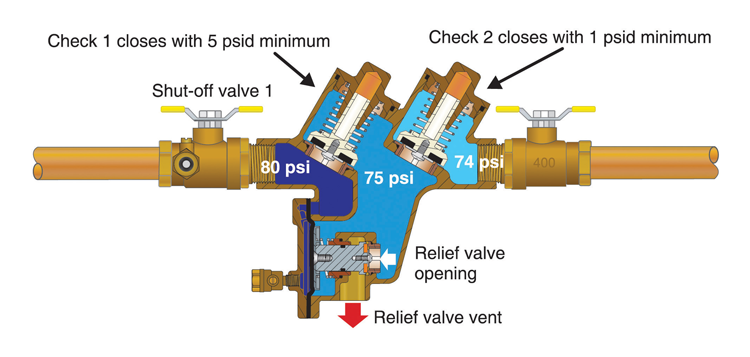 The change in the code language significantly impacts the size of the drain required to support this assembly. Standard practice has been to provide a drain sized to handle a minor check valve hang-up or the intermittent drip from a failing seal. However, manufacturer-published data is based on a worst-case scenario—complete removal of the check assembly under full pressure—resulting in extremely high discharge rates. Consider this note from Watts: