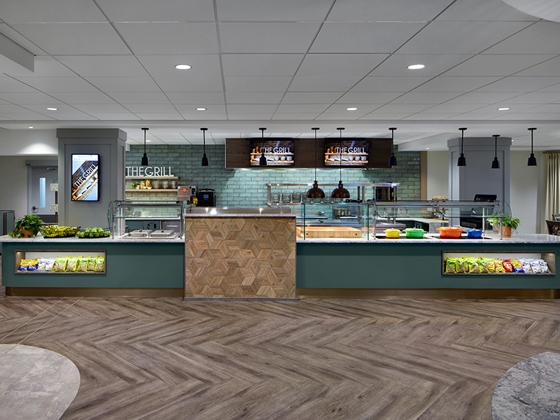 The renovations included a completely renovated Café and dining room including mechanical and electrical system upgrades, kitchen equipment and entry way. Other renovated areas included an activity room, lobby, and lounge spaces.