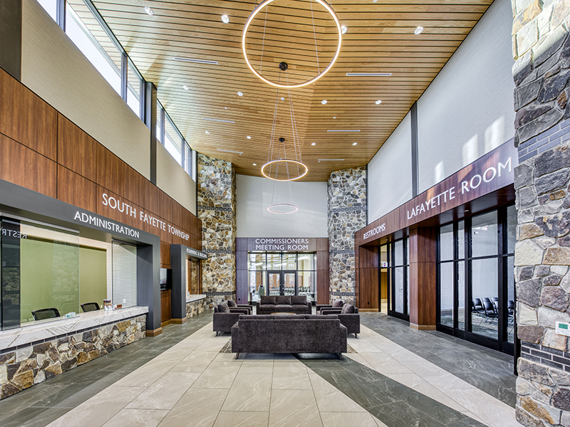 Barton Associates provided mechanical, electrical, and plumbing design and construction services for a new 2-story, approximately 36,500 square foot municipal office building and police station for South Fayette Township located in Morgan, PA.