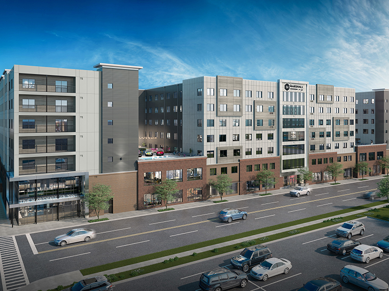 Barton Education provided MEP and fire protection engineering services for a new construction 7-story, 308,100 square-foot multi-family luxury apartment complex, The Marshall on 5th, located just a few blocks from the University of Alabama at Birmingham.