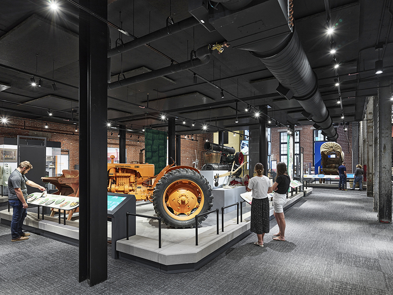 An archival storage space was provided with clean agent fire protection and narrow tolerance environmental conditions for special paper and film storage. The electrical system included a new normal power service and a gas-fired emergency generator. Lighting is LED throughout with track lighting coordinated with the exhibit designs. Communications systems include fiber backbone and horizontal cabling and distribution, equipment racks, telephone/paging, sound distribution system, and addressable fire alarm.